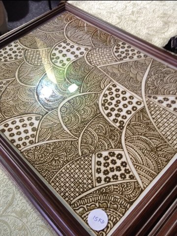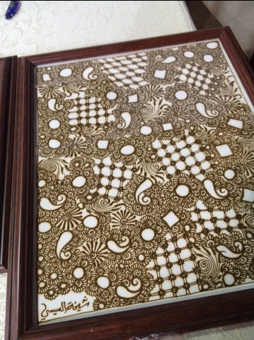 فنانة بحرينية اسمها شيخة السيسي شغلها مميز و تنقش الحنة بلوحات فنية حلوة وايد و