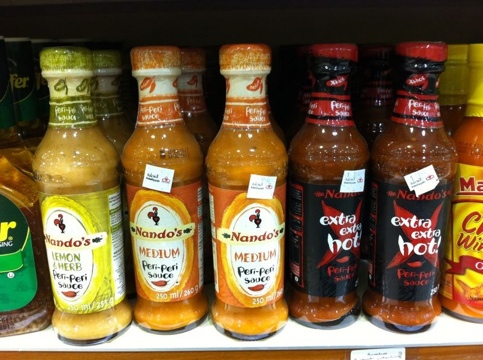 تذكرون مطعم ناندوز اللي فتح بالافنيوز و سكر مال الدجاج المشوي عنده صلصات عجيبة و كنت وايد احبها مع الاكل ، أحطها على كل شي ، لقيتها بجمعية العديلية و طبعا ما قاومت أخذت ثلاث أنواع و اللي شفتهم بالجمعية خمس أنواع و درجات بالحرورة ( قوة الفلفل) و هذي اصورهم