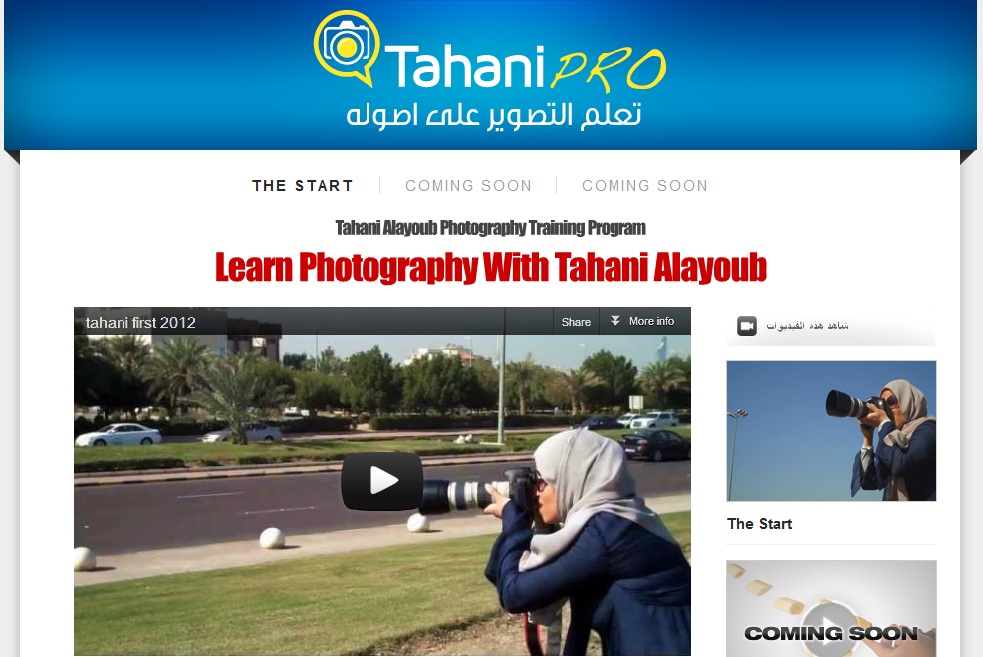 تهاني الأيوب و موقعها الجديد المختص بتعليم أصول التصوير ، فيه تصوير فيديو للمحاضرة اللي يحتاجها أي مبتدأ ليتعلم كل شي عن الكاميره و غيره ليبدع بلقطات مميزة