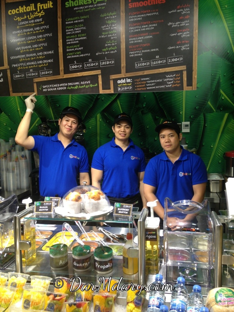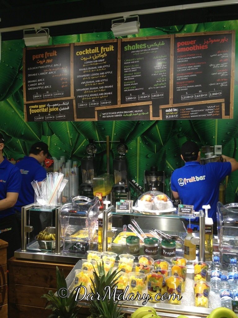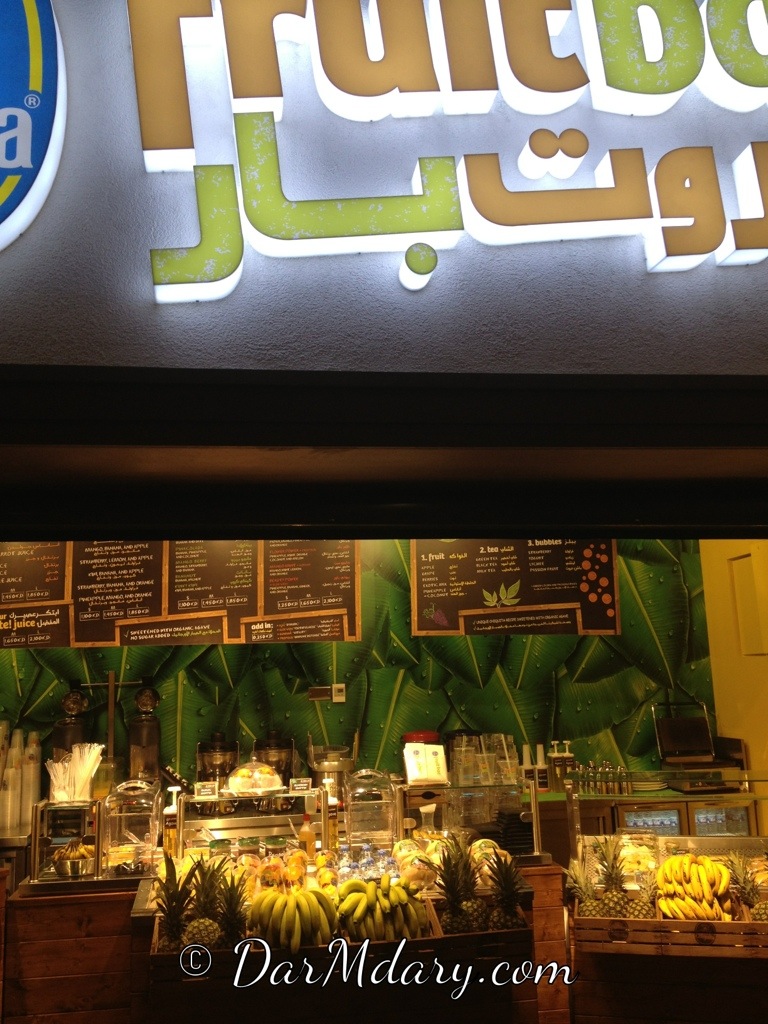 فتح فروت بار بالافنيوز بمنطقة السوق و هو متخصص بالفواكة و السلطات و السندويشات و الآيسكريم المصنوع من الفواكة الفريش و هذا أول فرع له بعد ألمانيا و إفتتاحه الرسمي هالاسبوع ، شوقتني شكل الفواكة المقصصة و العصاير اللي يسوونها و الآيسكريم يسوونه عندهم و كل يوم نكهات جديدة