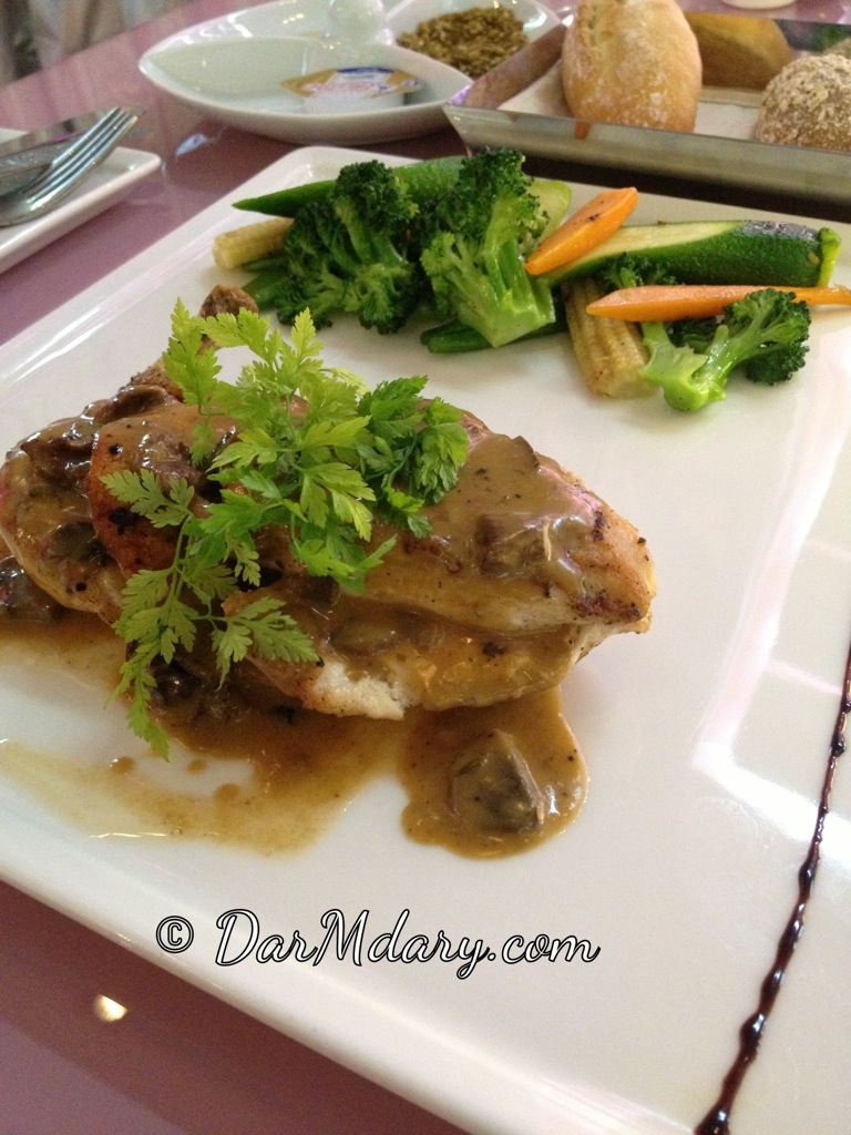 طبق الرئيسي صدر دجاج بصلصلة المشروم و كان معاها باستا طلبت تغيره لخضار سوتيه