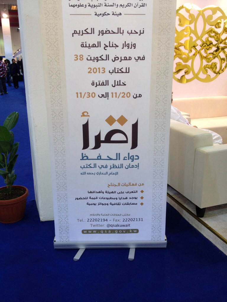 اليوم زرنا معرض الكتاب بأرض المعارض مشرف و الذي يقام سنويا بهذه الفترة منذ اكثر من ثلاثين سنة و الذي لفت انتباهنا هذه الهيئة الحكومية التابعة لدولة الكويت للعناية بطباعة و نشر القرآن الكريم و السنة النبوية و علومها والتي كثيرون لا يعلمون بها و أول مرة نسمع بها و بدورنا قمت بتصوير جناحهم بالمعرض