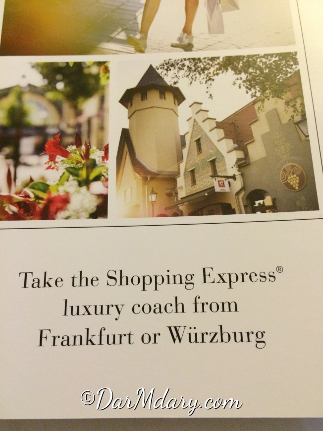 زيارتي لأوتلت بألمانيا بالباص من فرانكفورت ، أخذنا باص خاص للقرية يوصل مرتين باليوم للأوتليت و يحرك من جدام محطة القاطارت الرئيسية بفرانكفورت الساعه تسع و نص الصبح أو وحده و نص الظهر ساعه تقريبا التذكرة للباص ذهاب و عودة ب عشرين يورو