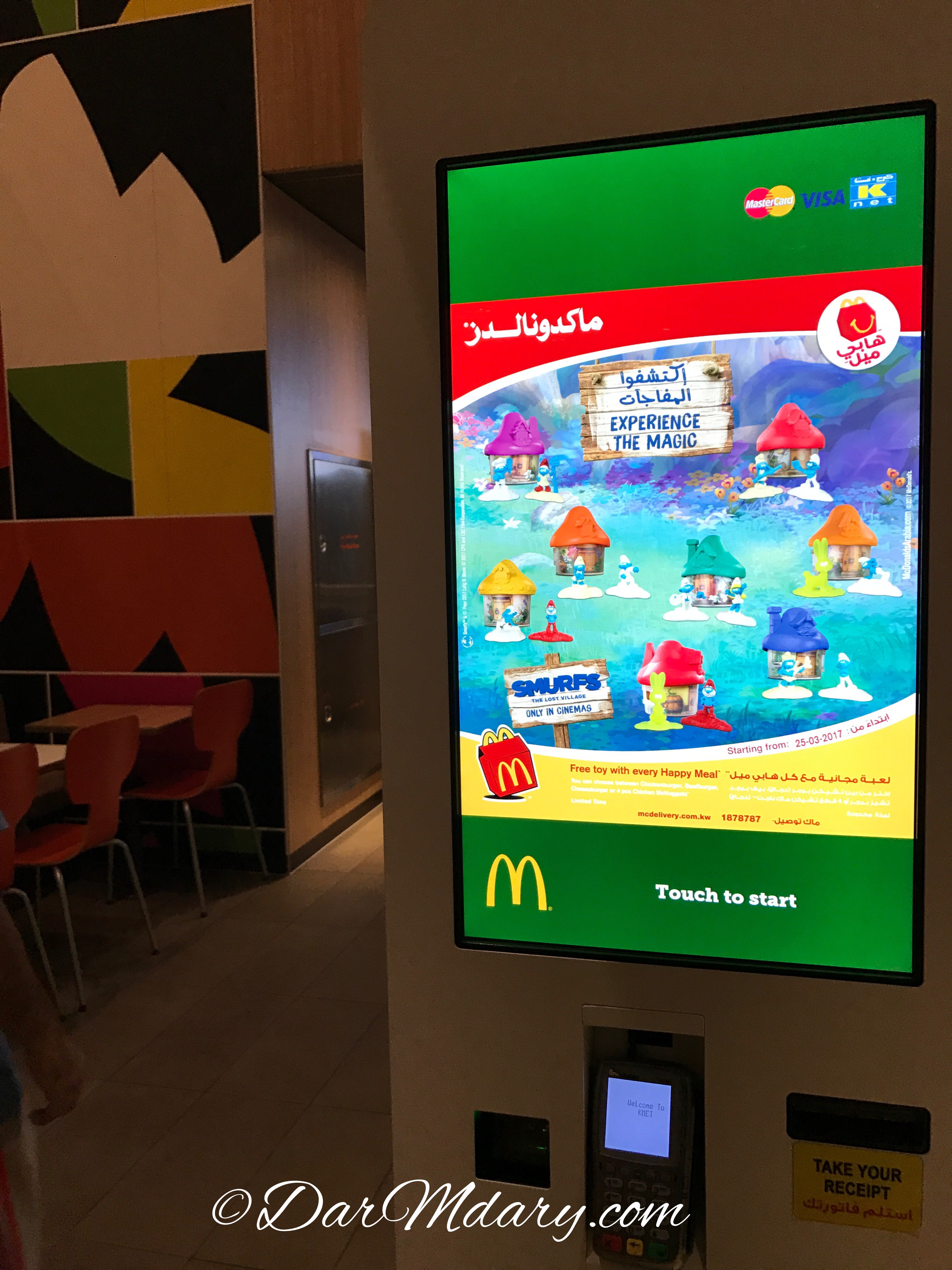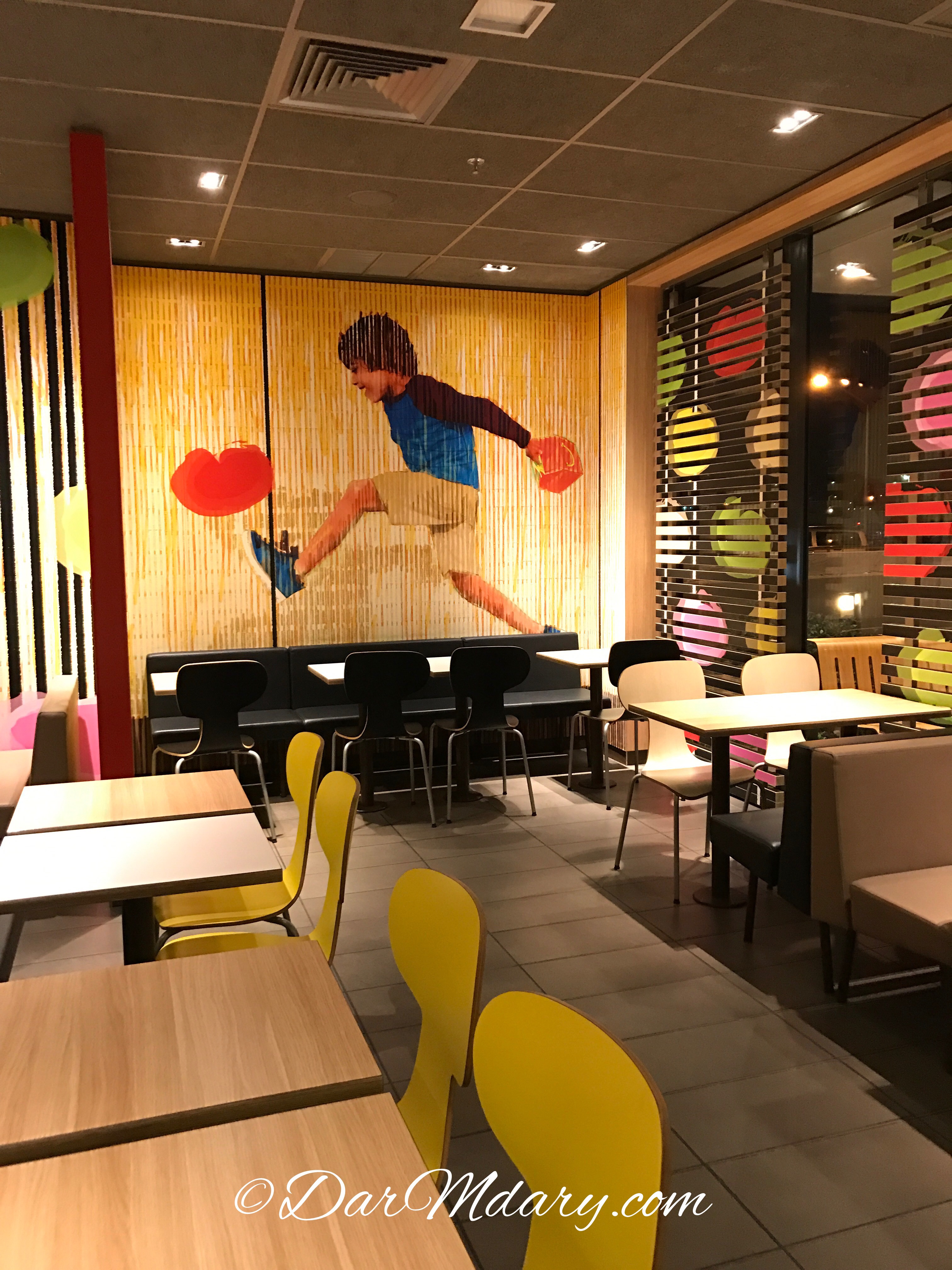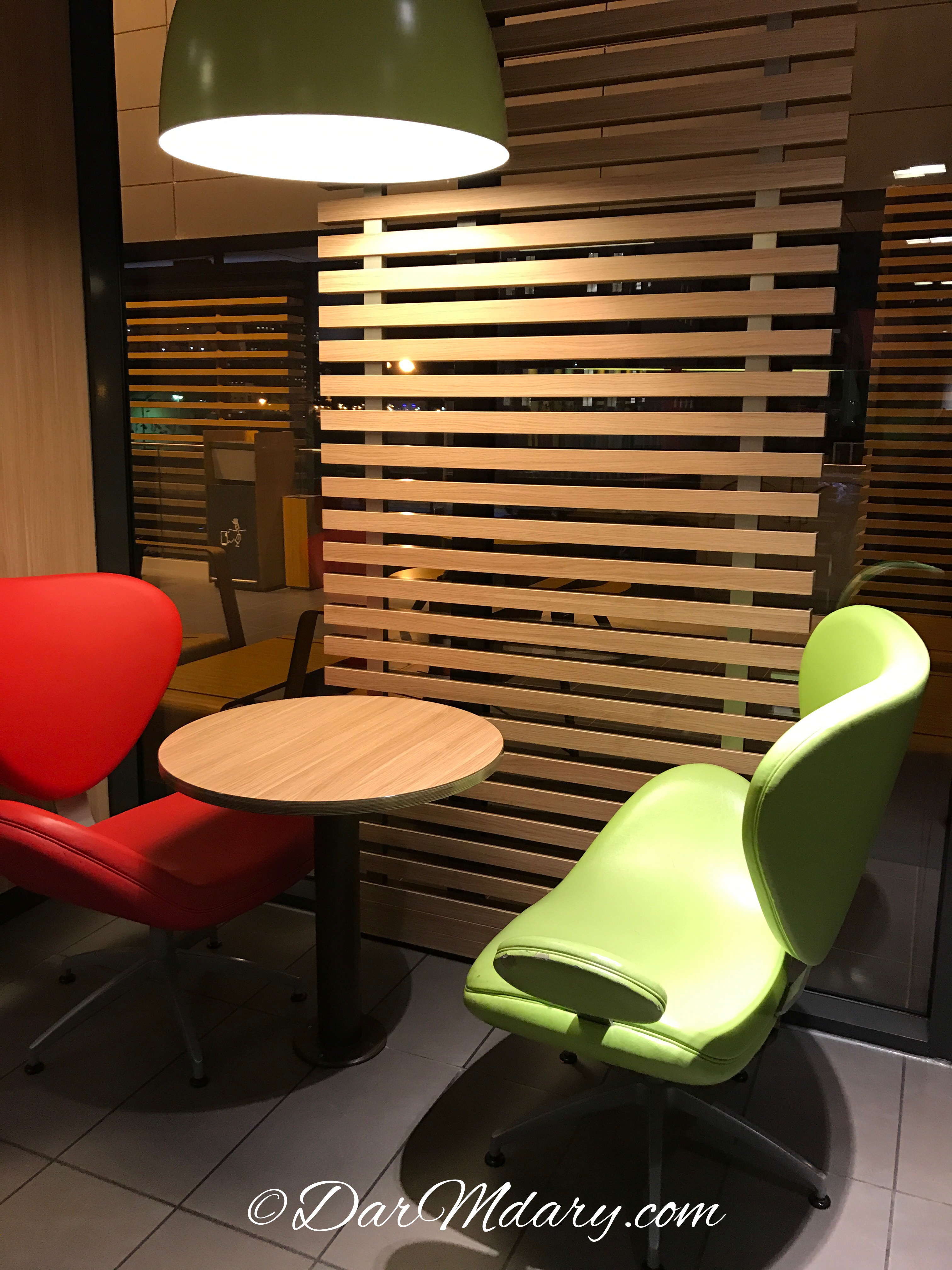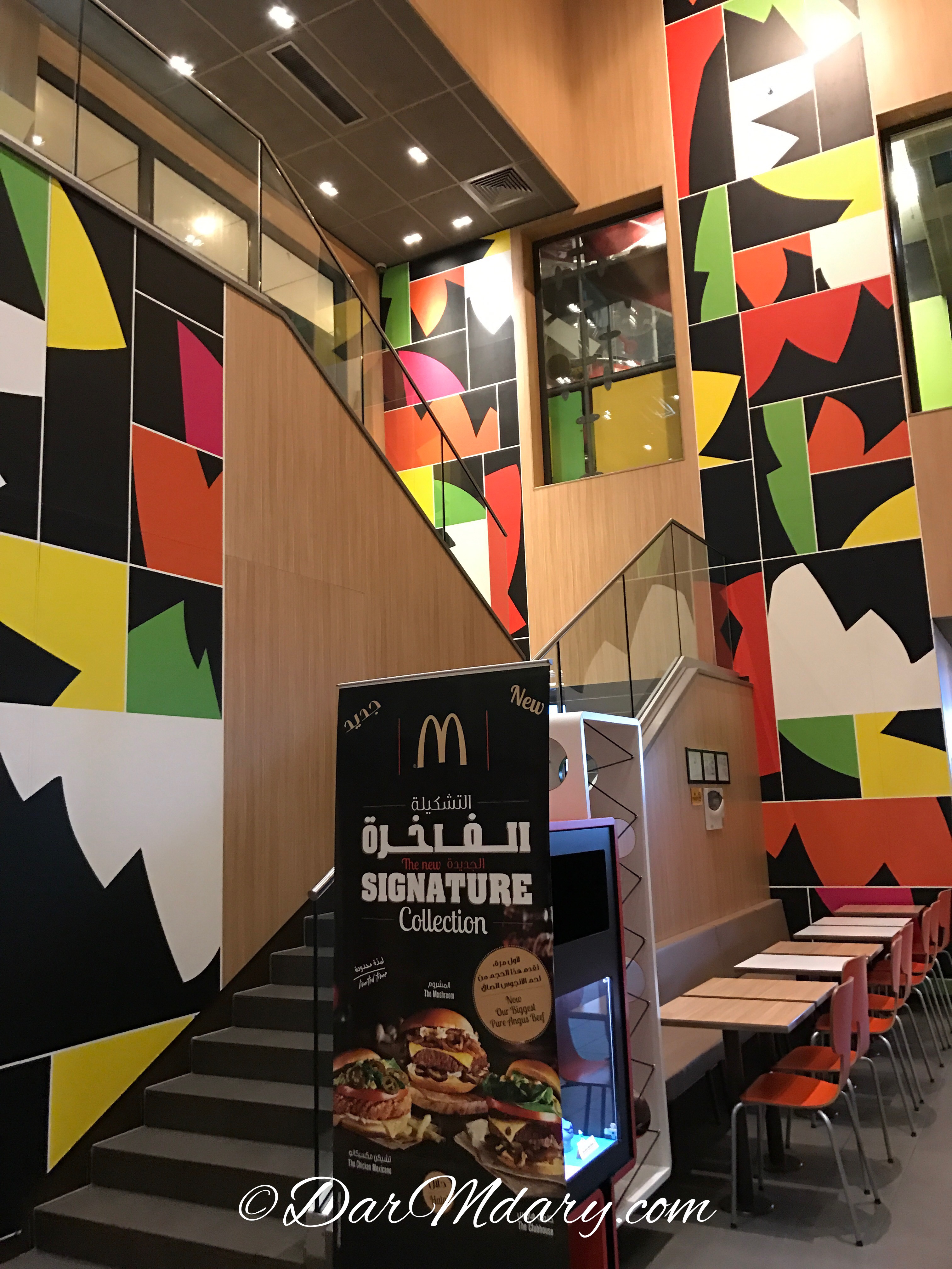 مطعم ماكدونالز فرع منطقه صباح السالم مقابل المسيلة ، عجبني ديكوراته و مساحته الكبيرة و خصوصا صالة الاحتفالات الخاصة اللي تسع ١٠٠ شخص ، المطعم كبير وايد و فيه كراسي خارجية و مستخدمين نظام الطلب بالجهاز بدال ما الزبون يوقف دور عالطلب سهل و ممتع استخدامه بجانبه كوزمو و ستاربكس و نوادي صحية اغلبها رجالية